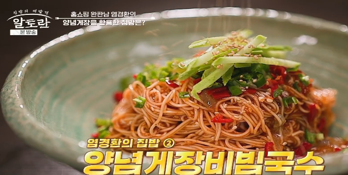 홈쇼핑 완판남 염경환은 남은 양념게장을 재활용한 양념게장짜글이와 양념게장비빔국수 한 상을 완성한다.