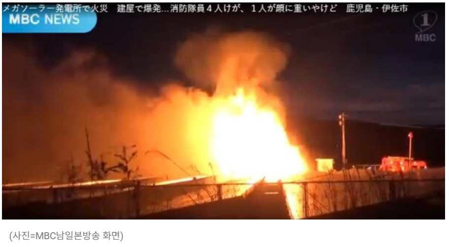 일본 가고시마현 이사시의 메가 솔러 발전소에서 지난 27일 밤, 화재가 발생하여 소방 대원 4명이 부상했다고 일본 NHK가 밝혔다.