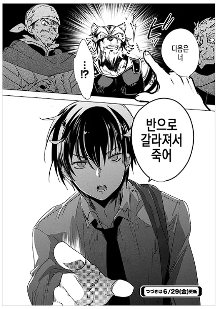 말 한 마디로 상대를 즉사시키는 주인공의 강함을 표현하는 장면이지만 대사의 강렬함 + 유치한 연출 탓에 웃음을 유발하여 만갤 유저들이 이를 '반갈죽'이라 줄여 부른 게 여러 군데 퍼져서 인터넷 유행어가 되었다. 때문에 양산형 이세계물 등에서 치트 능력 얻고 깽판치는 작품들을 깔 때 제일 먼저 언급되는 대사이기도 하다. 다른 점이라면 이 밈의 주인공은 이세계로 가면서 얻은 치트 능력이 아니라 원래부터 갖고 있는 치트 능력이라는 것 정도다.