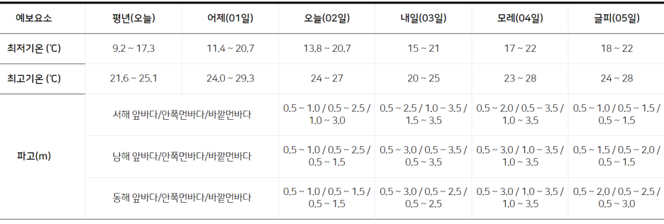 ○ (오늘, 2일) 중부지방 가끔 구름많겠으나, 남부지방과 제주도 대체로 흐림,