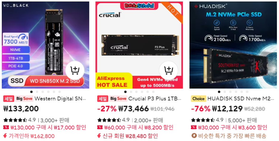 - 용량 위조: 알리익스프레스 등에서 유통되는 일부 중국산 가짜 SSD는 실제 용량보다 훨씬 크게 표기하여 소비자를 속이는 경우가 있습니다.