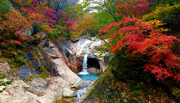 설악산에서 가장 아름다운 계곡. 가을 단풍도 곱기로 유명하다. 산골짜기의 유난히 붉고 선명한 단풍 빛깔이 감탄을 불러일으킨다. 편도 약 1시간의 주전골 탐방로는 설악산의 대표적인 단풍 산책 코스. 길이 험하지 않고 나무 덱 구간이 잘 갖춰져 있어서 누구나 쉽게 단풍놀이를 즐길 수 있다. 탐방로 초입에서 톡 쏘는 맛이 독특한 오색 약수를 맛보는 것을 추천하며, 에메랄드빛의 용소폭포와 선녀탕 부근 단풍 인생샷