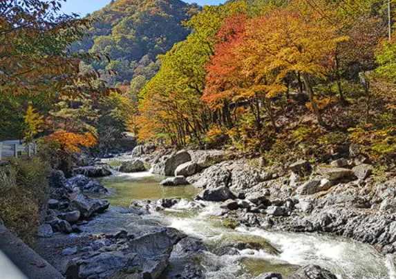 미천골 계곡을 따라 조성된 국립 자연 휴양림. 강원도의 다른 단풍 명소보다 아직 덜 알려져 있다는 점이 가장 큰 매력이다. 태백산맥 오지의 원시림 생태계가 잘 보존되어 있으며, 맑은 계곡을 따라 물든 빽빽한 단풍 숲이 가을 수채화 같은 풍경을 선사해 입소문이 나기 시작했다. 단순 방문객으로 한나절 숲속 트레킹만 즐겨도 좋고, 미리 예약 후 숙박시설과 오토캠핑장에서 쏟아지는 별을 보며 하룻밤 보낼 수도 있다.