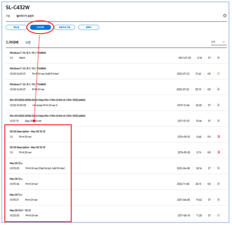 프린터와 연결된 컴퓨터에서만 오프라인 문구가 뜬다면 컴퓨터 윈도우 (OS)에 맞는 프린터 드라이버를 다시 설치해 주세요.