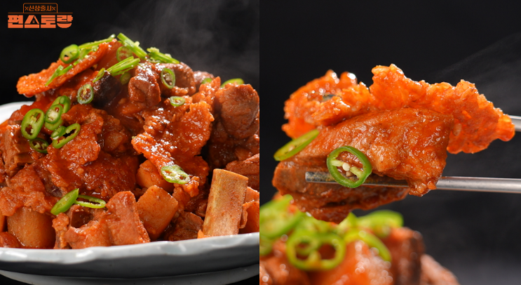 1. 냄비에 식용유를 한 바퀴 두르고 돼지갈비를 앞뒤로 노릇하게 굽는다.