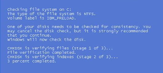 - 예기치 않은 종료: 시스템 종료가 불안정하여 다음 부팅 시 검사 예약.