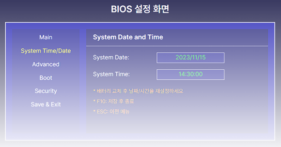컴퓨터를 켤 때마다 날짜와 시간이 초기화됨 - CMOS 배터리의 가장 대표적인 증상이야!