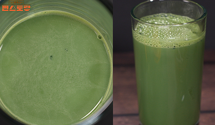 1. 두유에 쑥가루 듬뿍 1T를 넣는다.